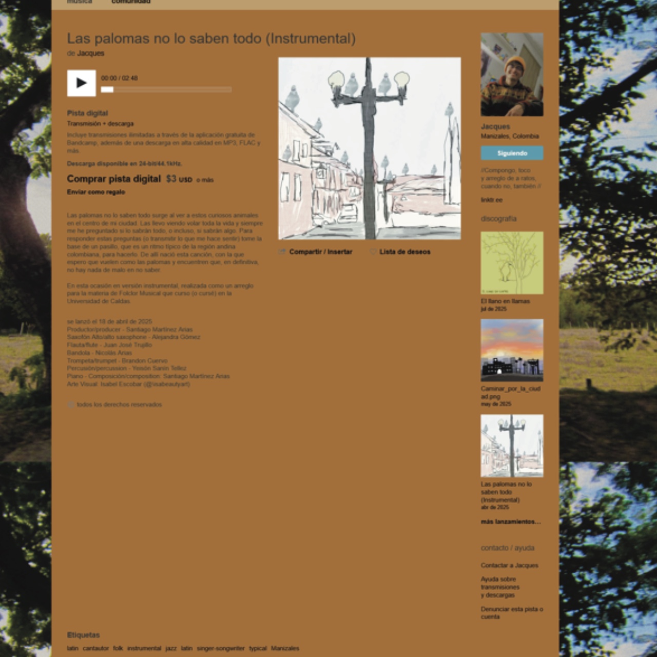 Ilustración para portada de la canción en plataformas digitales versión instrumental «Las palomas no lo saben todo» de Jacques